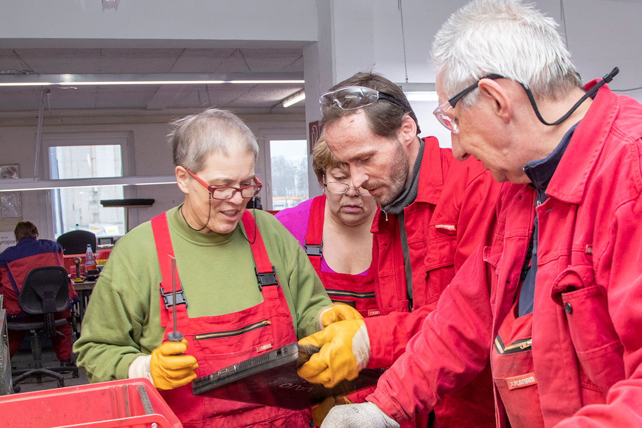 In unserem Entsorgungsfachbetrieb Wertstoff Recycling West (WRW) sortieren wir elektrische Altgeräte nach gesetzlichen Vorgaben und bereiten diese für die Wiederverwendung sowie die Verwertung vor. In unseren Zerlegewerkstätten demontieren wir die Geräte manuell und fachgerecht und führen die enthaltenen Wertstoffe zurück in den Recyclingkreislauf.