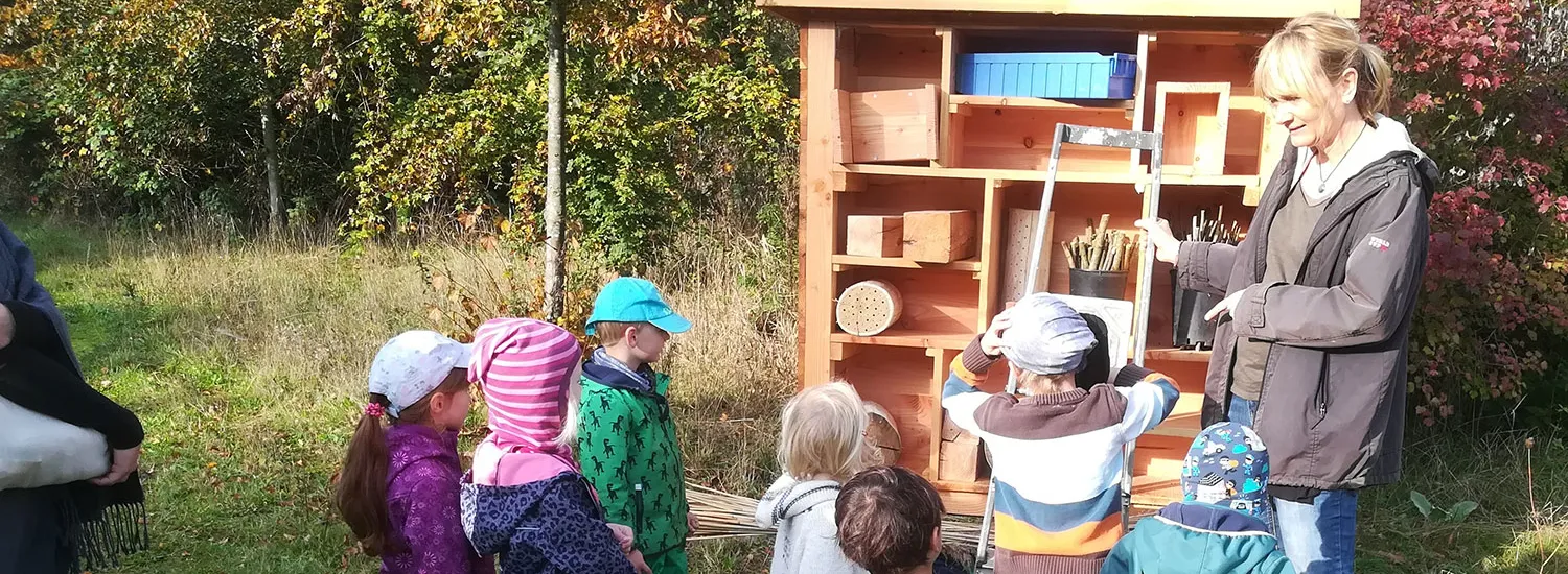 Praktischer Naturschutz ganz einfach! Schon mit einfachen Mitteln lassen sich Nisthilfen und Überwinterungsquartiere für Wildbienen und andere nützliche Insekten schaffen! Gemeinsam wollen wir Nistmöglichhilfen für Insekten bauen, die später auf dem Kindergarten- oder Schulgelände installiert werden können. Nebenbei erfahren wir Spannendes zur Entwicklung und Lebensweise der Insekten.